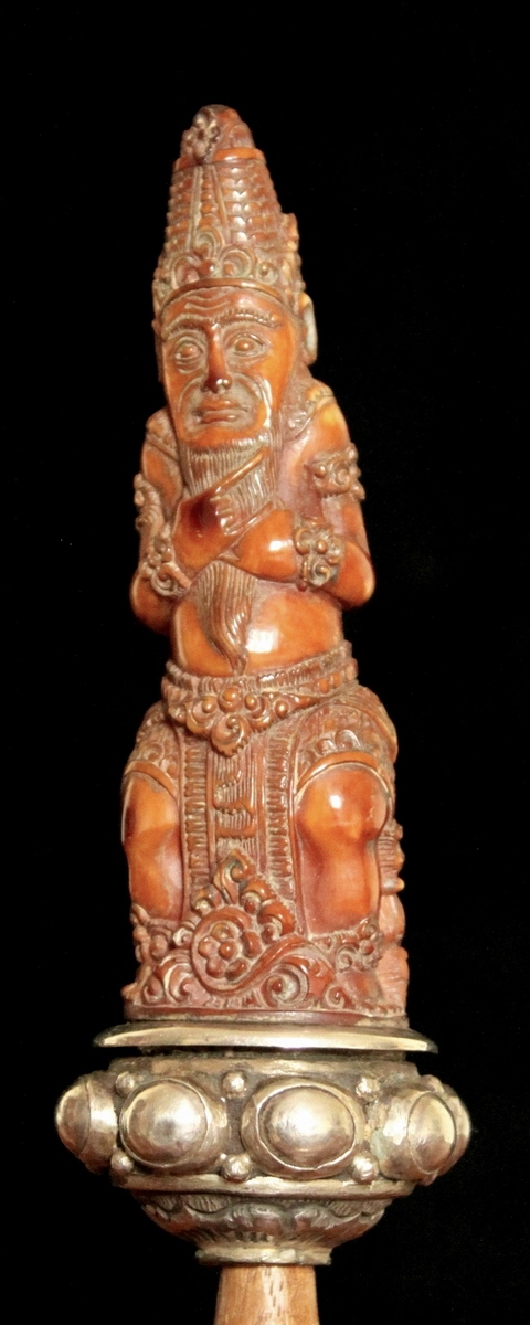 This hilt figure that is supposedly a depiction of the Honourable Mpu Barada shows the bell in the right hand. Perhaps that might be a vajra in his left hand.