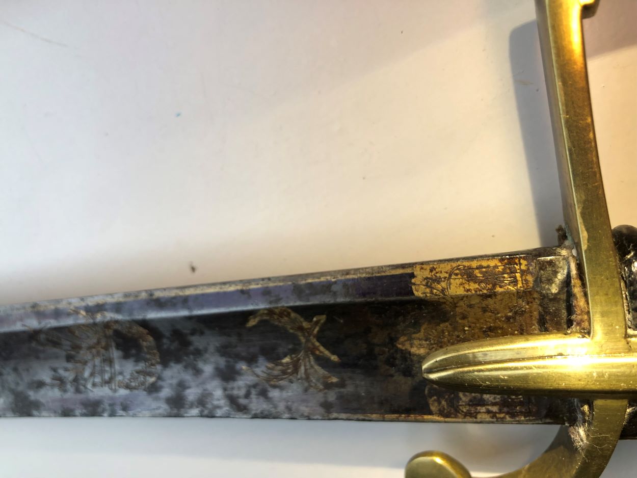 I bought this last month, not far from me, from a family where someone had passed away. They had no idea how the saber came into their possession, but it hung in their father's office for as long as they knew. It is the right saber in the first photo. I believe it is a hussar saber for an officer. In the Dutch army and weapons museum they have some almost identical copies. These are referred to as Dutch sabers from the Batavian Republic or the Kingdom of Holland (1795-1806). Because this one comes from a Dutch family, I assume that it also belonged to a Dutch officer. Unlike the left example, this one has been ground and is still reasonably sharp. Something that is not self-evident for an officer's saber. What I would like to know is who the manufacturer is? This could possibly narrow down the time period somewhat. The saber has the Solinger rose on the back and is marked on the ricasso. The problem, however, is that this is not completely visible due to the langet. What I can read is that it says "S & . Followed by several letters that, unfortunately, I can't make sense of. Who can shed some light on this? All that remains for me is to wish everyone a great 2024 with many beautiful old weapons. |