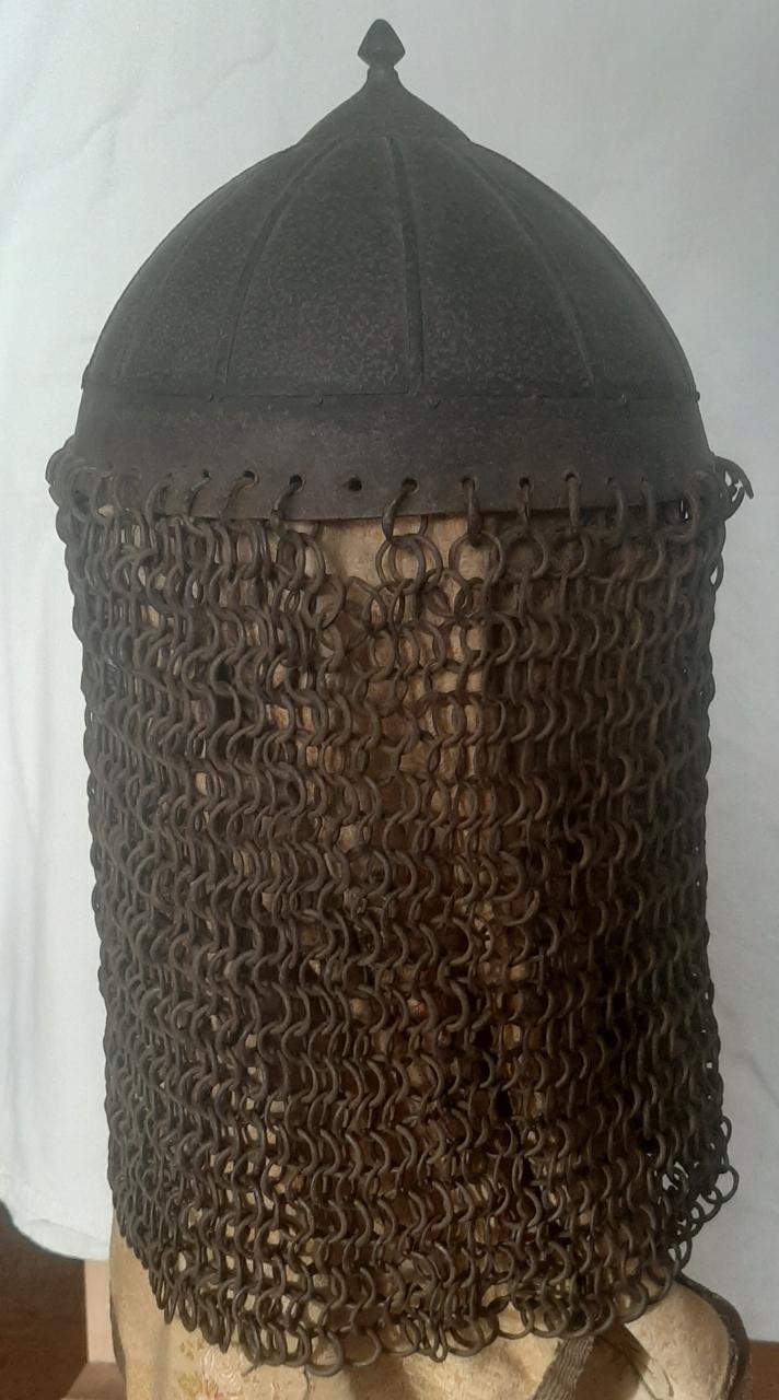 It looks like some kind of Indo persian Kulah khud type helmet. The fact that all the rings are riveted makes it clear that it is an old one.