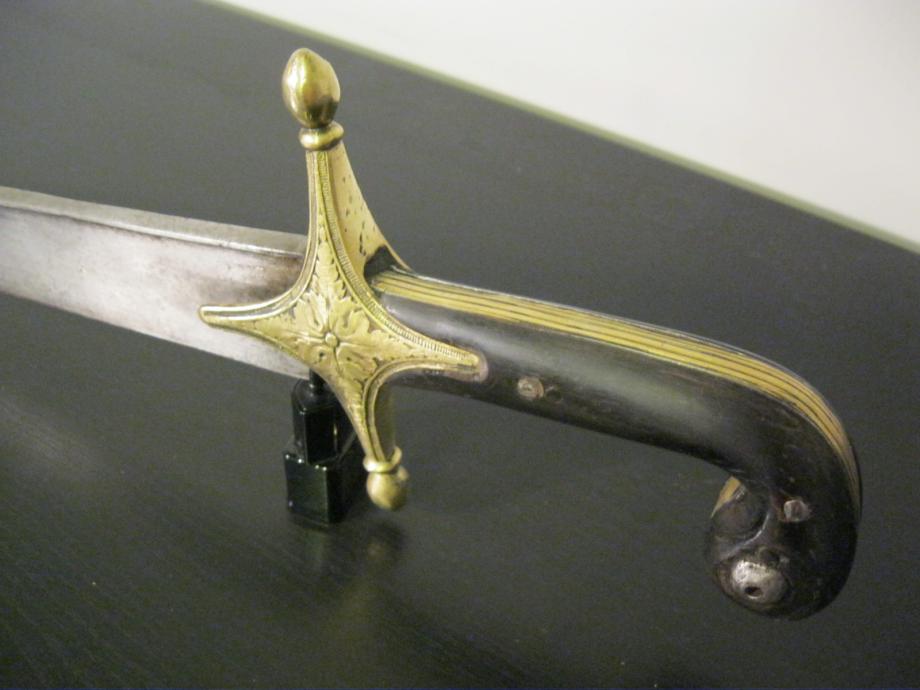 If I purchased an item as an untouched original then later found out that someone worked it over I would not be pleased with myself for not seeing this in the first place and secondly I would not be so very happy with the item if it were purchased on the basis of being unrestored. If I were to purchase the exact same item knowing in advance that it had been worked on or if I knew that there was the possibility that an item was not an in untouched condition then that would made a diference in how the item was preceived. Here is an example of what I am talking about. The kilij pictured below was sold a while back, the owner specifically mentioned "minor restoration" (can you spot it?). Since the restoration was mentioned, if I were to purchase it I would have no reason to be disappointed if someone pointed out to me that it had been restored. On the other hand if someone were to purchase this same sword as an unrestored original condition item and then later found out that it had been worked on, the buyer may not be so happy with his purchase as would most people who find themselves in a similar position, that is my personal opinion of course. |