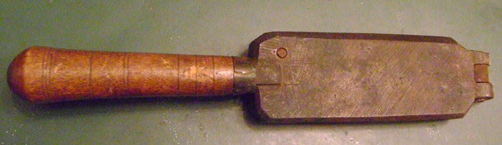 3 - A pair bullet (mono) molds. The larger one scissors type 18th century as seen in "American Revolution", marked #19. Caliber 19. 15 cms. length. The smaller one with a 'cube' to turn off pistol barrels. Caliber approx. 9 cms.