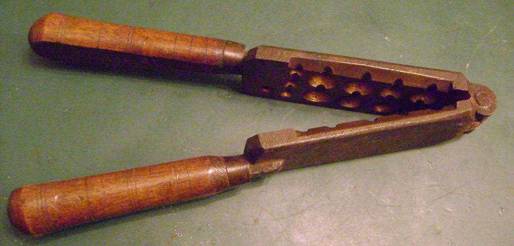 2 - A military bronze bullet mold Portuguese 18-19th century. For three calibers.Wooden grips. 28 cms. length.
