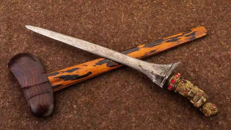 I doubt such carvings in th crosspiece were done until WWII, but when they were done, sometimes on old ivory crosspieces. I don't particularly like this kind of things, but that goes together with how "traditional" art developed in Bali. If we compare blades of this Keris and David's, I would say, David's is easily four, five times more worth. |