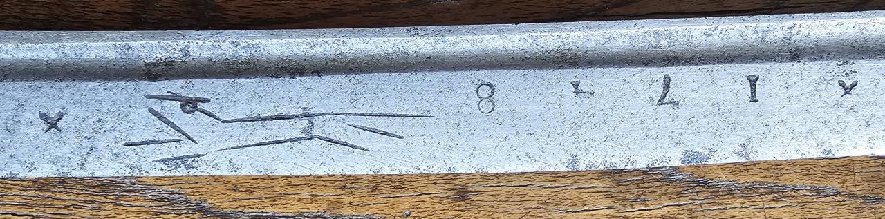 This one has a mark that looks like it may be intended to be a running animal. The year is upside down relative to the mark and blade orientation on one side. The year and mark is framed with two x marks. A few initial questions. 1. Does anyone recognize the western blade? Not much to go off of since it has been shortened and modified. Could it really be 1748? 2. Does anyone recognize the line drawing, is it a running animal? 3. The scabbard has a thick rawhide sleeve on the lower half of scabbard that terminates with a tube (something tubular is inserted there under the rawhide). Has anyone seen this rawhide treatment before? Any reason to not try to steam and straighten the bend? |