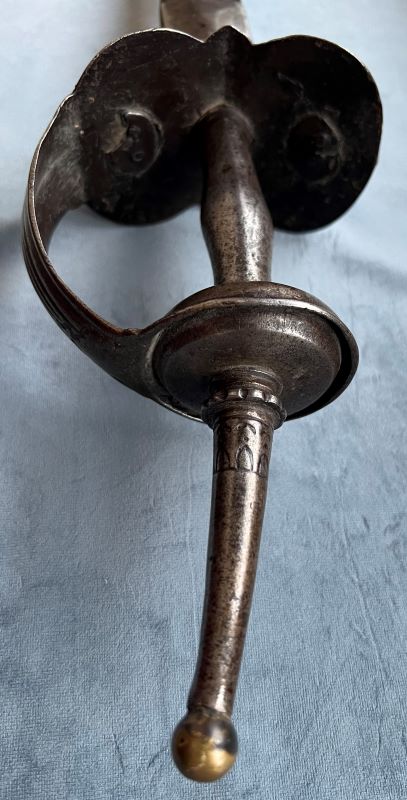 These long, straight blade swords actually descended from the old Indian sword, termed in Sanskrit 'khanda' (-loosely, cut, divide etc) which is often regarded as a collective term for 'sword' in Sanskrit. The term 'firangi' is another loose and collective term taken to refer to 'foreign' and refers to the European or other trade blades often found in these swords hilted in the hilts known as 'Hindu basket hilts'. The earliest examples of 'khanda' are swords depicted in the narrative frieze decorating the portico of the Rani Gumpta cave on Udayagiri hill in Orissa from 2nd century CE. (P.Rawson, "The Indian Sword", 1968.p.6). These early Indian swords suggest the origins of the 'khanda' with that, and of course the form diffused widely in India with a simpler hilt form than the more familiar 'Hindu basket hilt likely from European contact in 17th c.(p.28, Rawson, op.cit.). The khanda form into the Maratha dominions in Deccan; the Rajputs and Sikhs in the north and the Nairs in the south according to Rawson. The Marathas organized in a national state in the second half 17th c. with Shivaji as the leader. This of course likely was the origin of the swords association to him. The khanda is highly revered from both traditional and religious aspects and as noted venerated prestige virtually it seems in all these factions of Indian culture. The old Indian versions of Khanda were broadswords, as described : "..tradition has hallowed the two edged khanda of Mewar, investing it with a mysterious origin. It is supposed to be the enchanted weapon fabricated by Viswascarma with which to be girded the founder of the race and led him forth to the conquest of Chittor". "Annals and Antiquities of Rajasthan", J.Tod, 1898,p.55 With the development of the expanded elements of the 'basket hilt' by the late 17th c. through the 18th long straight single edged cavalry blades began to appear on these, and they were most certainly fighting swords. The long stem on the hilts already extant had been intended for two hand use of the sword, though later less prominent vestigial examples are known. The 'firangi' blades seem to have been mostly European, with German and Italian blades most common, and these seem almost invariably backsword (single edged). While more typically German, we have seen Italian examples which likely came from 18th c. schiavona. Indian armorers were fully skilled in producing their examples of these blades, thus technically overriding the 'firangi' term, but that is of course irrelevant. In my opinion, 'khanda' remains the most workable term for these aside from the familiar nit picking ![]() This is my single example from years ago when I was studying Indian swords here, and of course likely end of 18th into 19th. Blade is unmarked (unable to see beneath forte reinforce) but surely European. It is tempting to consider these as being from period of the Anglo-Maratha wars 1775-1819 (the MAHRATTA is old spelling of Maratha). It is really hard to say Maratha or Rajput on these without far more expertise in decoration and other nuances, but these swords are the most compelling of Indian forms, far less ubiquitous than tulwars of course. Last edited by Jim McDougall; 5th April 2025 at 07:36 PM. |