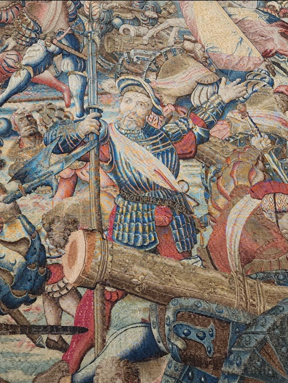To my amazement I found out the that the incredible Pavia tapestries were being displayed in my home of Houston, Texas at The Museum of Fine Arts. For those that don't know, the tapestries were made just a few years after the battle itself which occurred in 1525, making them nearly 500 years old. Each of the seven tapestries are massive, weighing over one hundred pounds each and measuring 28ft by 14ft (8.5m by 4.25m). I ended up taking way too many pictures but I hope that some of you may enjoy a few favorites. While these pieces are basically propaganda, the weapons and clothing pictured are amazing.