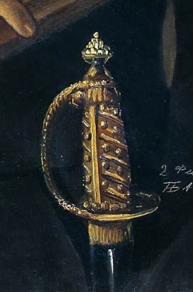 The portrait presented was painted after the admiral's death, depicting a very interesting sword. What is this? Is it the same award sword, or is it a figment of the artist's imagination?