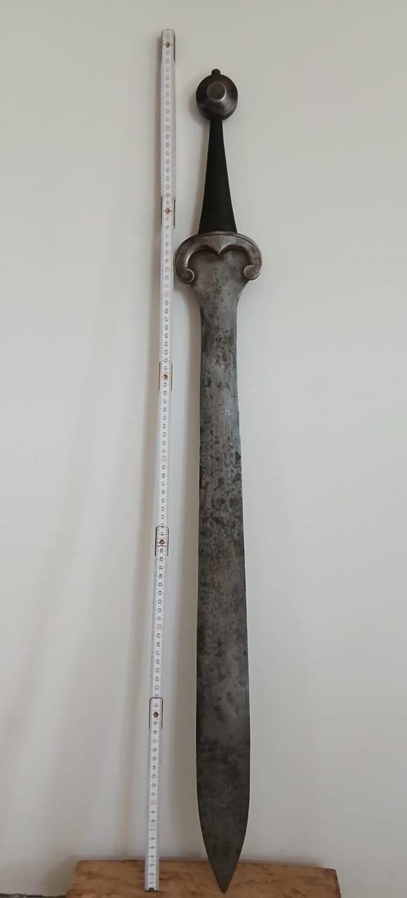 The leather-covered guard is old, and the wide, flat, and sharp blade as you said , which shows clearly some age and is made of quality steel, reminds me of my 16th-century Italian sword/storta.