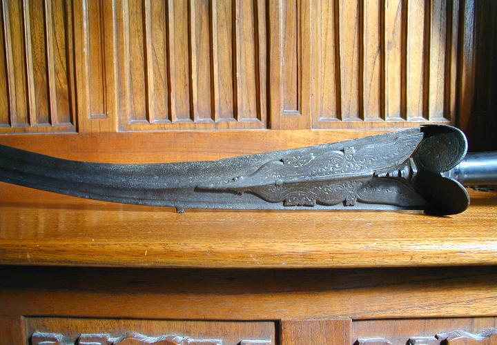 BTW, has anyone ever seen a scabbard for one of these swords? I have not. Maybe they usually sat out on a table or altar, and lying on the spine was there natural storage posture.