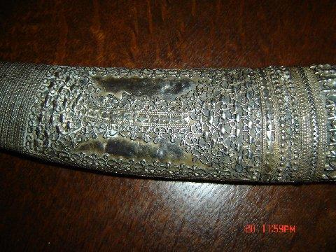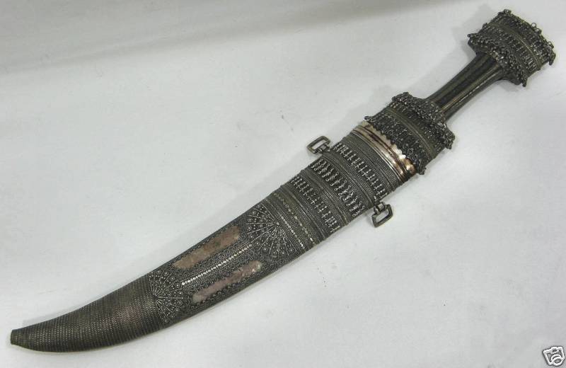 A popular style, and this particular jambiya was certainly of above average quality, and 20''+ long !!!. Here are more variations of the same type, but without filigree work.