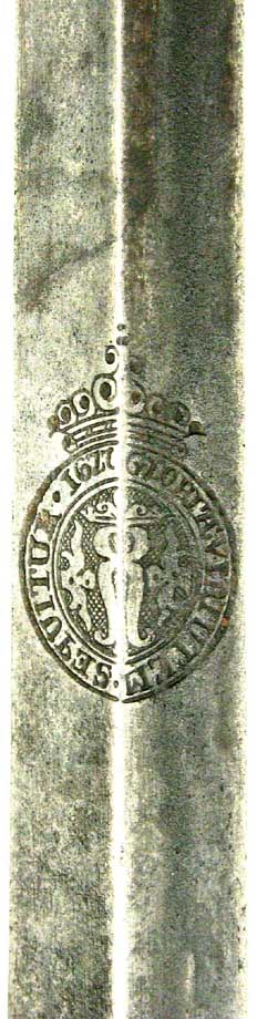 In the picture is a 17th C Pappenheimer rapier that has an etched crest on the ricasso used as a makers mark. Its quite uncommon but there are more rapiers like that out there. The ones I saw were all high quality rapiers no arming swords so far ( in the 16th and 17th C )