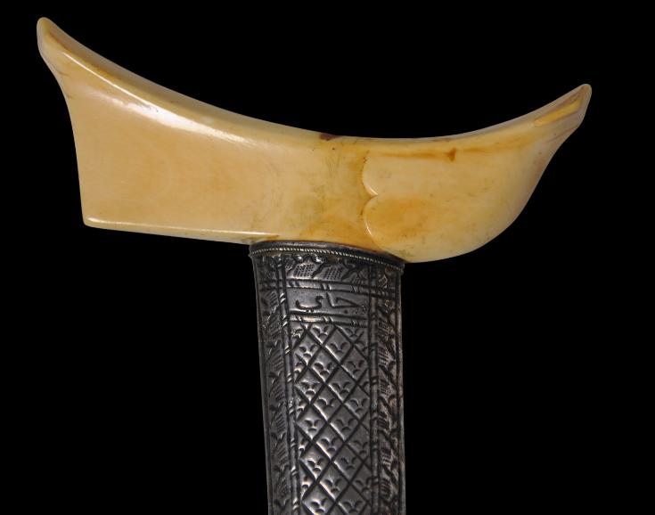 This early Javanese form was adopted by the Bugis people, so really, we are looking at an early Javanese scabbard form. As I commented in my original guess:- " --- geographically maybe North Sumatera through to Peninsula". So I'm not at all arguing against Sumatra, I'm saying that I am unable to rationally support any specific geographic location, I'm saying --- very clearly --- that I'm guessing. I do know some very experienced keris people who would place that scabbard as Riau. I know other equally experienced keris people who would place the hilt as South Sulawesi & give it the correct name used in that area. The hilt cup I think is most likely Peninsula, & that's a genuine guess. The blade certainly appears to be outside Jawa, but it could possibly be from one of the areas not under direct kraton influence, however, I'm still inclined to go with what I believe would be the opinion of my teachers:- "diluarJawa" & thus not even worthy of consideration --- in fairness, these teachers were very Jawa-centric, maybe I should say Solo-centric. If I had it in hand I might be able to construct a supportable opinion, from a photo I cannot:- a photo simply cannot give sufficient information upon which to give a defensible opinion. A guess is a guess, and an opinion in the absence of supporting evidence is pretty much the same as a guess. Detlef, yeah, I agree, that repair looks pretty clumsy, maybe the blade is not original to the scabbard & this strange angle was forced upon it. Maybe. Post #5 I think I should tighten up my relaxed comment here, & write what I really mean. Forget "--- maybe North Sumatera ---" & substitute "--- maybe along the North Coast of Sumatera & including adjacent islands ---". It is still a guess. Last edited by A. G. Maisey; 28th November 2025 at 01:54 AM. |