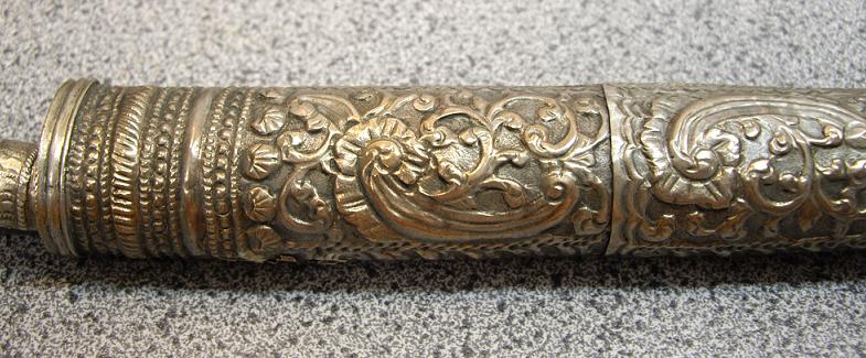 Your comments certainly have good merit, i.e. if the blade is legible dated, it only makes sense to accept it as a fact. My 'system' places more emphasis on quality, condition and material. The older fittings I observed tend to show more wear-and-tear signs, especially on fittings made of thinner silver, such as in our case, and this is a reason I put late 19th Century on it. I think extra 70-80 years would have add more 'wrinkles' on the relatively thin silver fittings! The older blade could as well be re-fitted. As for place of origin - I actually thought them to be Balkan as well, but most literature calls them "Turkish", and as it's the same empire - it's a tough call:-) |
