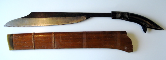 I am happy that I am able to show you my two new friends. Two rare Pade from Ceram. The first one I swap with a member, sorry Carlos and Ericlaude. It is 68 cm long and 9 mm thick at the base. The end cap of the handle is missing. It have had thick corrosion at the blade and I cleaned it with lemon acid. |