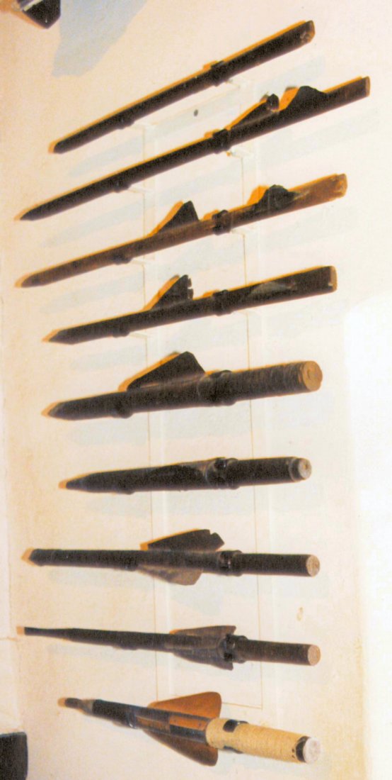 The only known surviving specimen of an incendiary gun arrow, probably ca. 1330-50, in the author's collection. Eight original gun arrows of ca. late 14th to early-15th c. date, at Eltz Castle (and one reconstruction at the bottom); photographs by the author on July 3rd, 1987. m Last edited by Matchlock; 1st July 2012 at 09:13 PM. |