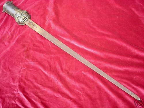 I've seen another one of these for sale David. The two pieces above are different, the oxidation patterns are not quite identical, but I feel they come from the same workshop. Sheet metal stamped and bent to shape, brass I guess. Who knows about the blade