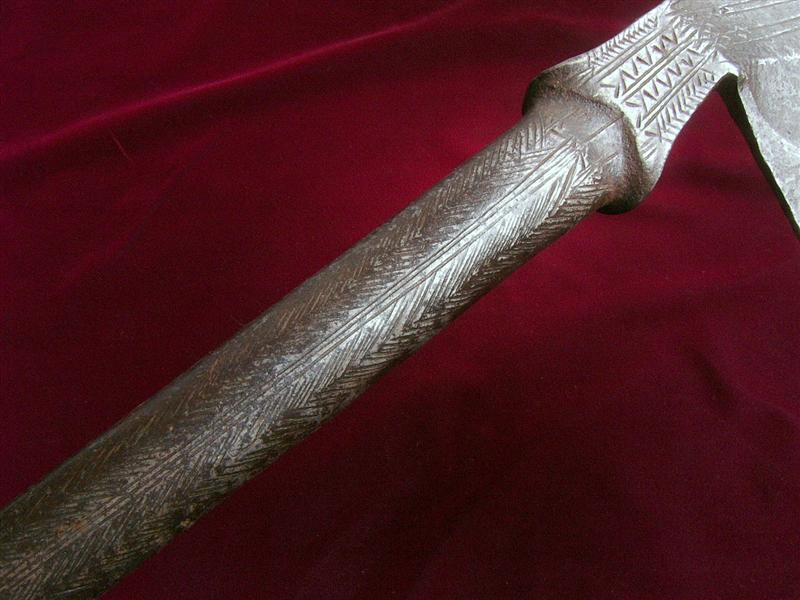 Submitting this on behalf of a french speaking friend - he bought it in the USA, sold as a native axe/weapon - to me it looks african, but I know about tools not weapons... Can anyone give a positive ID??? If you speak french, you can join and log into the Outils Anciens forum at http://outils-anciens.xooit.fr/t2155...nne.htm#p10940 Thanks in anticipation... |