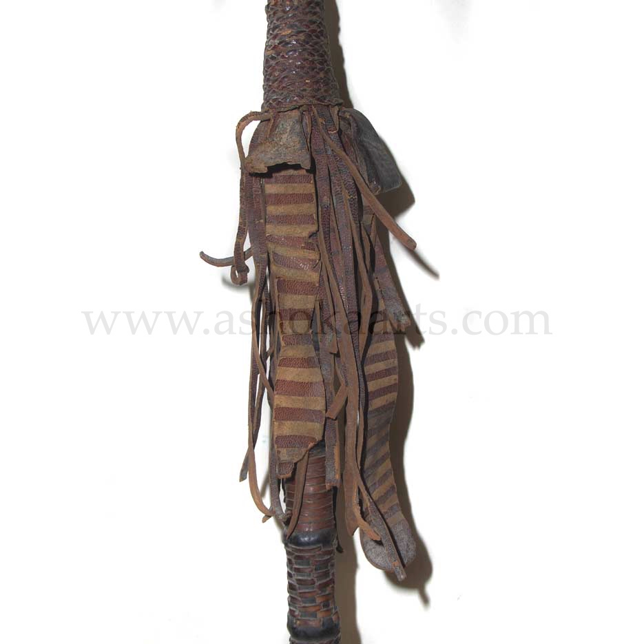 After seeing the sellers pictures, I had assumed that the shaft had been 'cut down' (a common practice with 'bring backs' ) However, on receiving it ...I am almost certain that the shaft was originally this length and that it is possibly used as the Zulu's Iklwa.