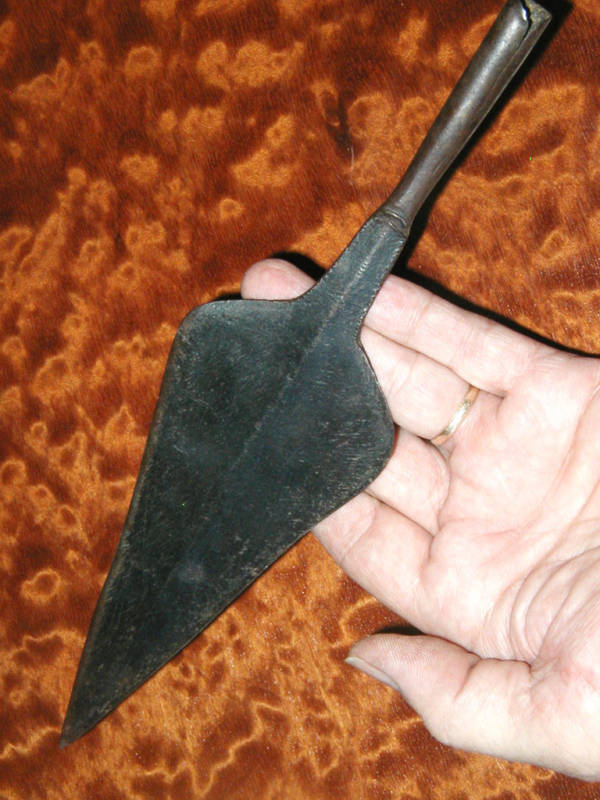 Picked this up last week. The spear head seems very well made but is on the petite side maybe some kind of hunting spear? I just had a look at some of my other pics and think this could be a Tetela spear? Notice the similarity when compared to this dagger. Comments welcome.