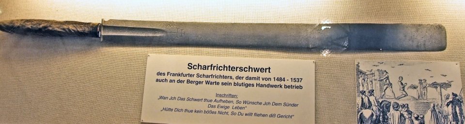 Some months ago I bought this German exectioner sword that probably was made in the XVII century. The blade is in good conditions and still very sharp. It has many engravings. A justice wheel and a hang bar inlaid with copper, the cross over skull, "IHS". At both sides of the blade there is an inscription: IN DIESER STUNDE// GOTT STEARKHE MICH: IN THIS HOUR//GOD STRENGT ME. It has a maker mark in shape of a animal, apparently a dog (?). Also engraved 2 court of arms at both sides of the blade and I shall be happy if somebody knows to which family it belong. At both sides of the perry pole iron cutted crosses ! The blade has also overall nice pitting. The complete length is ca. 113 cm (44,5 inches). Width of the blade: around ca. 4,8 cm (1,9 inches). Any additional information and comment is welcome. Is anybody able to explain the use of the three holes at the end of the blade. A feiedn told me wwere used to add weight but it is not clear how they did.