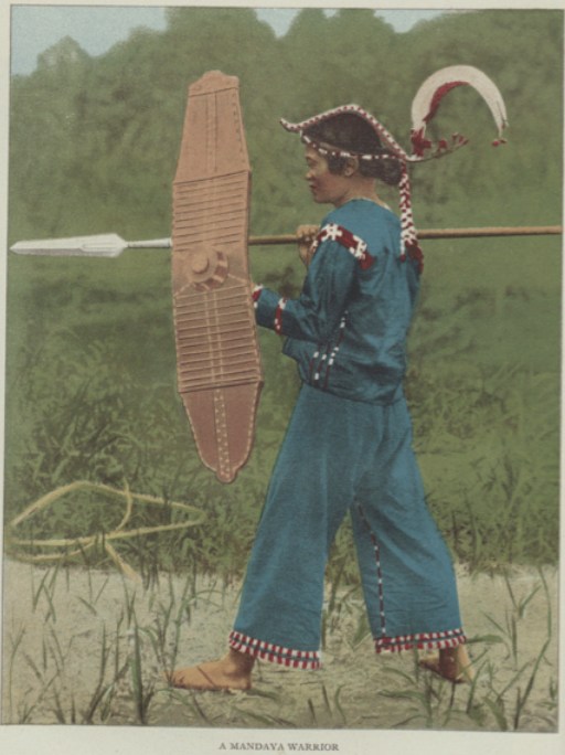 Here are the pictures with one color painted picture of a Mandaya with a similar spear in hand.