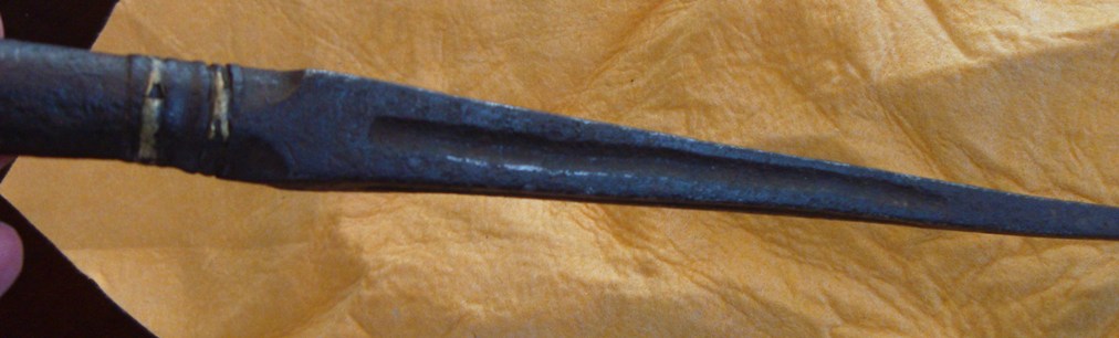 modern lance point, square cross section, fullers. the blade portion on it is about six inches and the socket about 3 in. when rough forged & before cleaning and polishing/sharpening it looks much like fernando's photos.