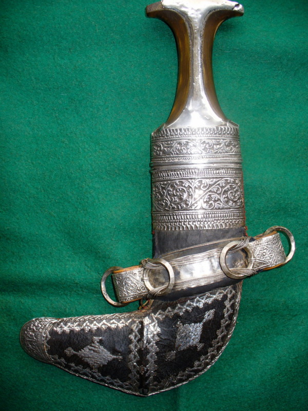 I maybe mistaken, but I think your third Omani khanjar is actually more typical for Saudi Arabia That's a picture from flickr.com taken by a french photographer Eric Lafforgue Also as I noticed those khanjars worn in Saudi usually have more curved scabbard than Omani ones, and mainly they are placed straight vertical, not with a slope to the left like Omanis... |