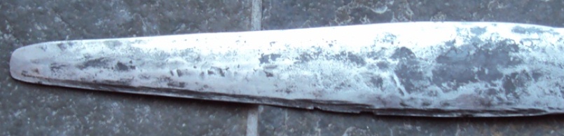 The blade should be iron and relatively heavy, flatter on one side with the incised decoration being reserved for the presentation face of the blade (a fairly common occurance in African weapons). The hilt is cow horn.
