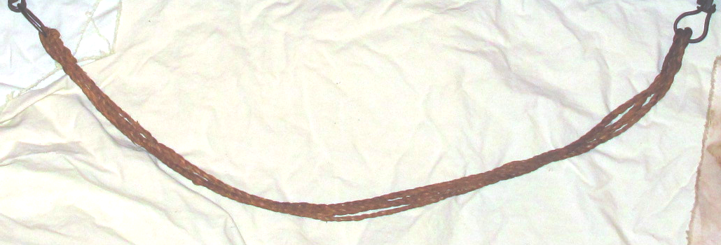 Howdy chaps. As some of you may be aware, I've acquired myself another jezail, which came with (among other things) a rope sling. I'm not sure what sort of rope it is, but my guess is either hemp or jute. It's not in terribly good shape (though it will, in fact, support the weight of the gun quite happily); it's fraying readily, shedding small bits of fibre whenever it's rubbed, and its ends have been oiled or tarred at some point in its life.