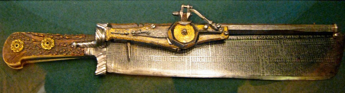 Amazing piece! and what is so fascinating is these combination weapons. The concept seems fully understandable...if the firearm misfires, you have an edged weapon already in hand. It does seem that the sword would be terribly balanced, but in a rapidly developing contact in combat...at least you would have something for some degree of thrust.