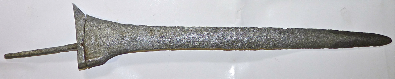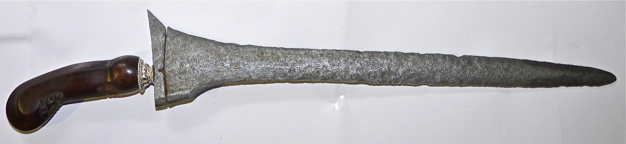 This is one of my first two kerises. The blade was in horrendous shape and I recently decided to see what pineapple juice would do with it. It took a bit over two weeks and I decided to take it out today. Here is before: