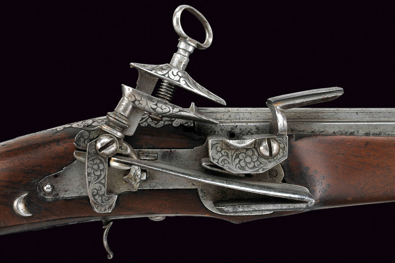 It has a calibre of approx. 17 mm; the barrel measures 43 cms; the total length is 74 cms and 54 cms. when folded. Said to be a XVIII century Brescia work; i would love to hear more about these guns, namely and specialy who would be the maker... or the maker's school. Thank you for your comments .. |