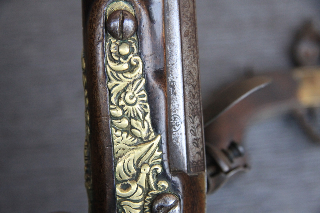 Also as a curiosity we may recall that the Liege "ELG in the oval" proof mark was introduced by the Napoleonic proof rule in 1810, when the French occupied Liege. It would be interesting to know all the words engraved in your pistol lock plate, if you find it possible. |