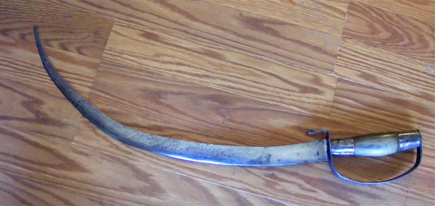 The horn hilt on this is 5-1/4 inches in length and the blade is slightly under 1/4 of an inch thick at the hilt. The length of the blade measured along the cutting edge is just over 20 inches and is 1-1/8 inches wide at the hilt.