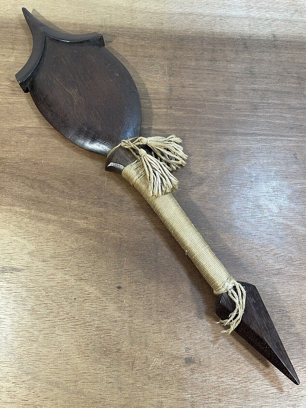 When I first looked, and up until now, I thought and so must have many others that it is rather atypical. So much so that in that classic collector mind set. [ If its not in a book is has to be wrong. ] Then I looked at the Amazonian clubs in my collection some are indeed not in publications or seen on museum data bases. However they came from FUNAI operatives, for authentic status is hard to beat. Just because not being from FUNAI does not mean inauthentic. It certainly appears not made yesterday. Somebody brought it back to the UK and not being open to variants is no way to learn or build your collection so this evening I bought it. Sellers picture, I do not think a real evaluation of the item can be made without handling and comparison in day light with related items. So when I have it I shall do so here. Last edited by Tim Simmons; 11th March 2023 at 09:06 AM. Reason: Correct FUNAI |