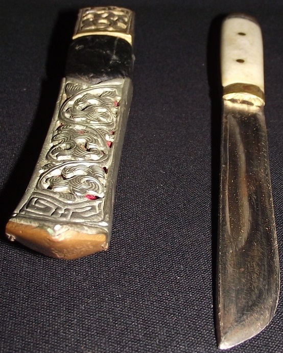 I've been trying to get more Mongolian knives from my inlaws who live over there but cultural differences have gotten the way. I asked for an antique knife, but to them it'd be insulting to give a relative somebody's old knife. So I said fine, get me a new one. But new ones are very expensive because they're adorned with silver. So I said fine, get me a plain one without any silver. But they wouldn't do that either because "even a poor person's knife has some silver on it." My final attempt is for them to buy a cheap unadorned knife and then bring it to jeweler who can add some silver decorations. This is apparently cheaper than buying a premade one. |