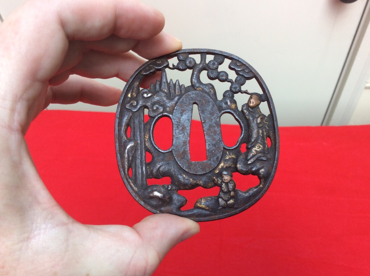 I have 5 Japanese tsuba I am looking to swap for edge weapons, shields, helmets, or other interesting artifacts from the Middle East, Asia, or the Oceanic regions. E-mail me at rsword007@aol.com to discuss trade options. Additional pictures are available.
