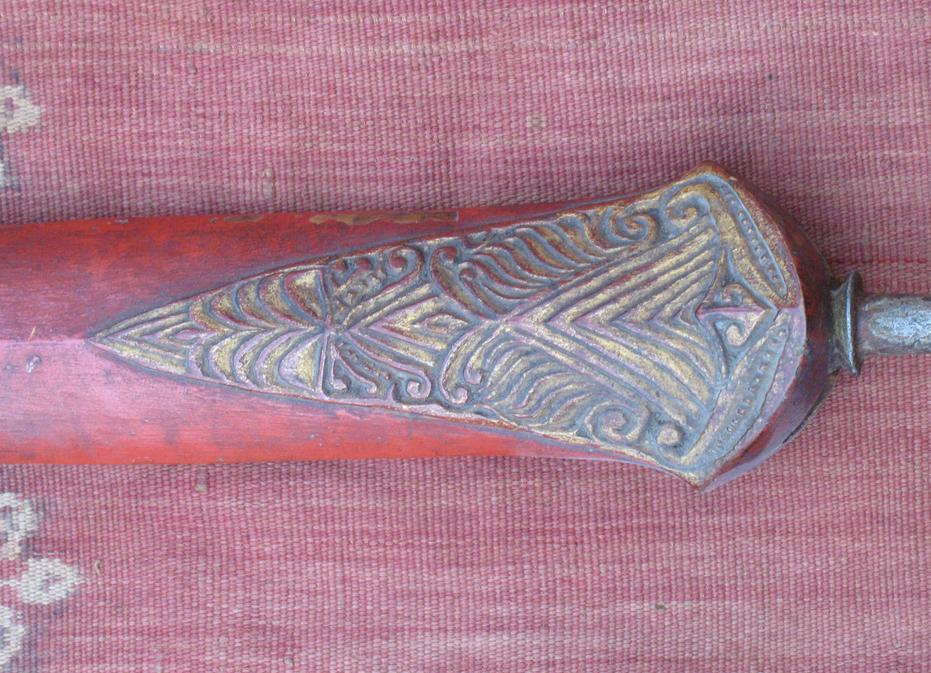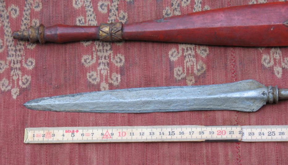Indonesian tombak with beautifull wooden polychrome scabbard / 100% fit