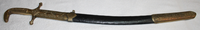 Here's one i've not seen before. It is an Indian beater Shamshir. For those that don't know, beaters had one of the worst jobs in the world. They were Indian slaves whose task it was to venture into the tall grass and jungle and attempt to flush tigers, and other dangerous animals, for their masters hunting pleasure. To assist in the flushing, and their own safety, they were given a short sword such as this. The dealer I purchased this from listed it as 19thc and provided these translations for the two Arabic quotes at the scabbard drag: