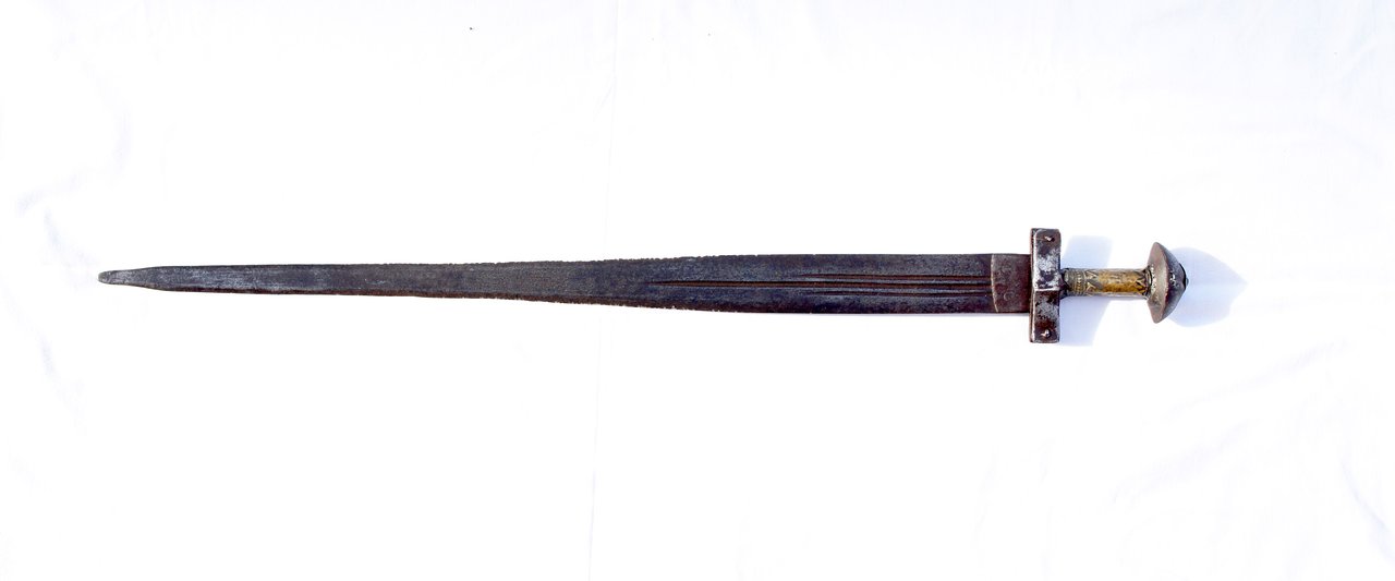 A pity about the condition of the blade, somewhat relic condition, but I still see a lot of appeal to the piece. I think you will find that the blade has been modified to be two edged.