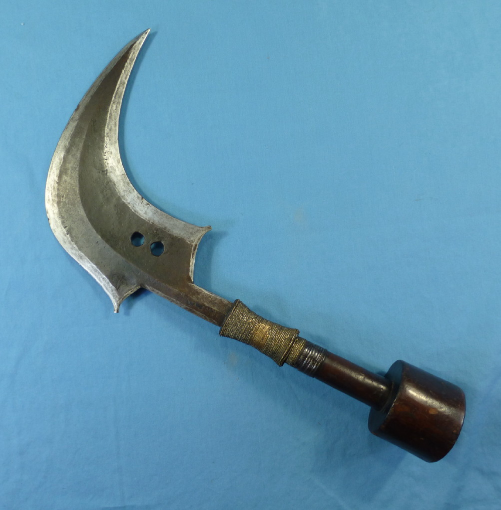 It also notes that less elaborate wood handle versions (instead of the carved ivory of the parade examples) were carried by ordinary villagers. Rather than the elaborate status oriented character, these were multipurpose tools used by both men and women. Presumably they, like most such items, could of course serve as a weapon.