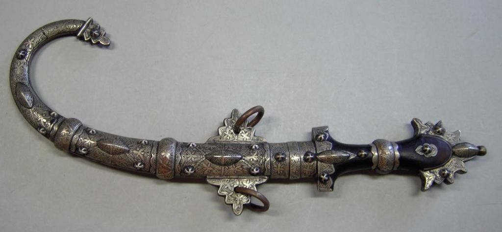 I was lucky enough to buy three koummyas which I'd like to show here hoping that members are able to state how old these pieces might be. The biggest of the three has a total length of 470mm and ist blade is 280mm. The smallest one is made from silver with camel bone in the sheeth. It has 300mm and the blade is 154mm.