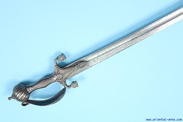 I have this sword on order; it is an Afghani version of the Indian tulwar. The blade is marked “Enfield”, so I would assume that it was made from a sword captured during one of the Anglo-Afghani wars. To the best of my knowledge, Enfield did not make sword blades for general export. There might be a date that has been obscured by the new hilt. My question to the group is what was the original British pattern for which this blade was made?