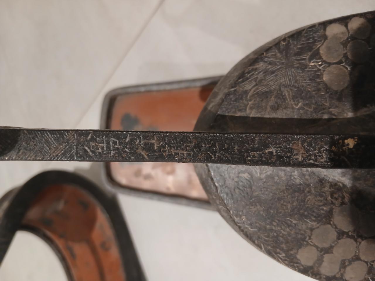 Edo period for sure but no idea if early or late... Oddly enough, I haven't found any other posts on the site that mention them, but perhaps I haven't searched properly. They seem to be signed. The signature is of better quality on one of them. Can anyone translate it ? It could help for fix it.🙂 Idem, does some specialist know if the ́’flower’́ symbol is a famille crest ? Does anyone have any tips or a magic method for restoring the shine to silver inserts without damaging them and remove some rust? Kind regards |