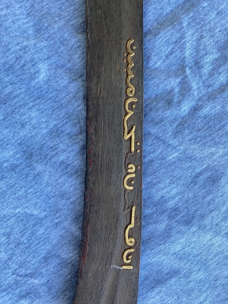 A fellow collector bought this pedang and asked me if I could help translating it. The state of the scabbard is bad, and the hilt is in relic state. But the blade is susprisignly well conserved with a very bold inscription on both sides. Can someone read this ? One side is arabic and the oter side javanese I guess... Thanks and best regards, Willem Last edited by asomotif; 27th June 2021 at 10:00 AM. Reason: forgot something |
