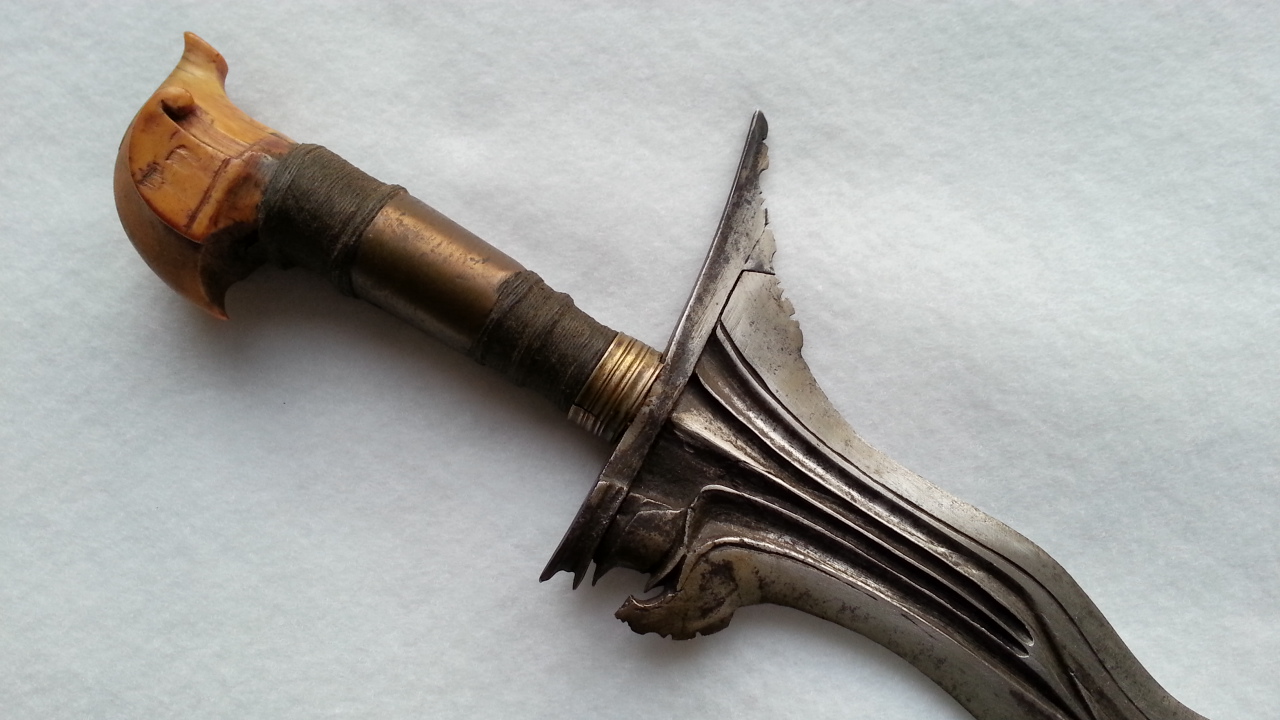 'found this nice little piece a couple weeks ago at the local gunshow. i thought it was neat in that it has a miniature pommel and shorter than usual blade. i would say this particular kris could be classified under "archaic".