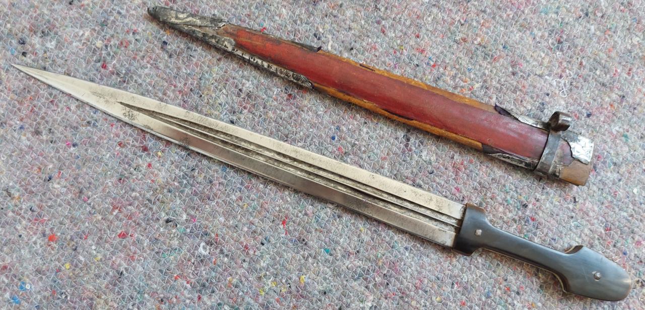 I believe this Caucasian kindjal is of Circassian origin but I would be grateful for more information on this piece and its maker mark. Тоtal length 41 cm, blade length 30 cm. |