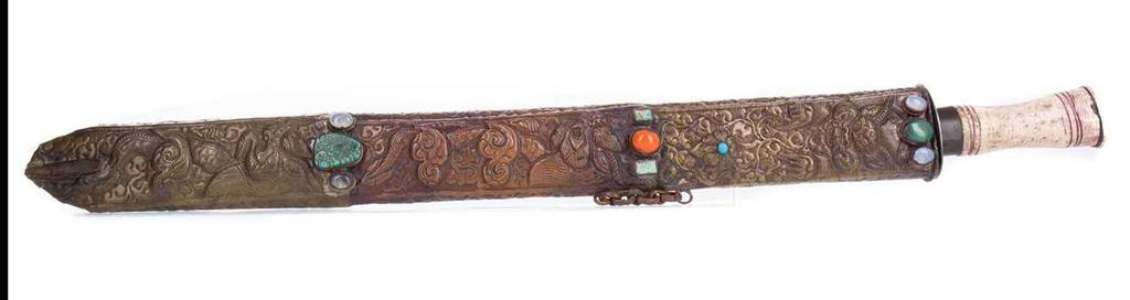 I'm guessing it is Tibetan, or maybe Bhutanese as it has a dragon motif scabbard,