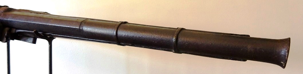I am considering to let go this piece from my collection (since 2016). A third quarter 17th century dog lock musket modified to a blunderbuss, visibly around the period, with its barrel cut to 48 cms. There is a mark inside the lock which i could never identify. With natural signs of age, as per pictures.