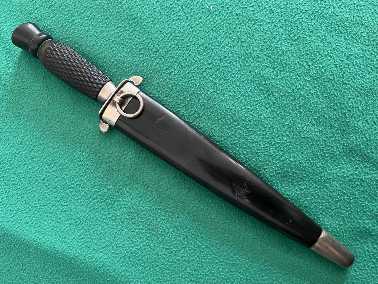 With regards to the Military dagger. It is made of all horn construction and the blade is wootz. Images on request!